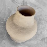 Este vaso se inspira na arte popular dos nossos ceramistas primitivos. Tem um bojo farto, formato nada simétrico e textura bem irregular. Idealizado para ser exposto com os vasos rustico 24 e o de gomos 19. Dimensões: 25,5 x 32cm